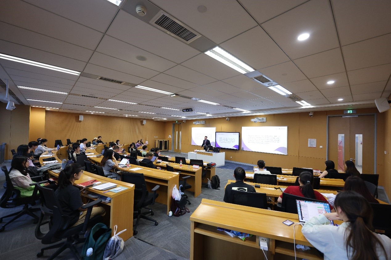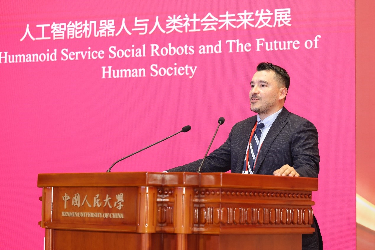 来自昆士兰大学的博士生David Goyeneche作为商科分会场参会博士生代表,进行“人工智能机器人与人类社会未来发展”为主题的演讲,并与在场师生互动交流。