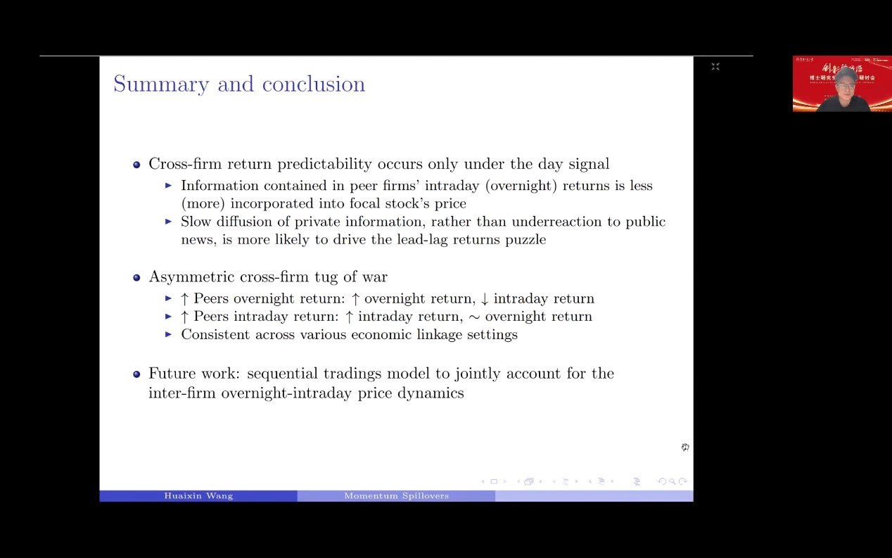 分会场第二节为财务与会计方向,以线上会议形式举行,由特邀校友张书博主持,并与学院青年教师陈俊一同担任点评专家。来自香港理工大学的Adubofour Prince Charles、清华大学的王槐鑫、密歇根州立大学的尚聪、香港理工大学的汪奔进行论文研究汇报。