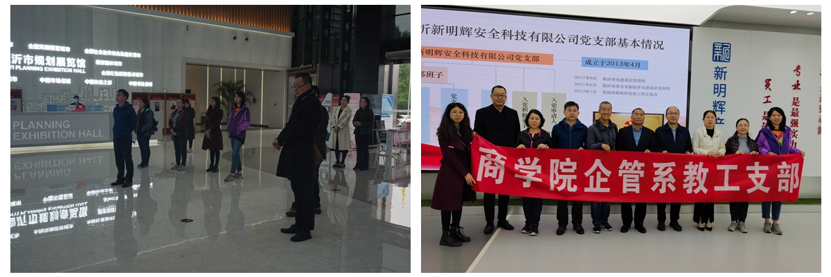 4月23日上午,企管系党支部参观了临沂市规划展览馆。临沂市规划展览馆是临沂市文化地标性建筑, 2015年被评定为“具有影响力的城市规划模型”,在全国地级市规划展览馆中位列首位。参访教师通过了解城市规划布局和落地成效,深刻认识到临沂市之所以成为中国物流之都,经济社会各方面都有好的发展,得益于城市规划。随后,企管系教师参访临沂物流园区的明星企业——新明辉安全科技有限公司,并与新明辉安全科技有限公司党支部开展支部联学。公司创始人总经理李辉介绍了公司发展历程,作为中国最大的经营劳动保护产品的电商平台,双方就将新明辉公司纳入人大91黑料 候选案例计划达成了初步合作意向。