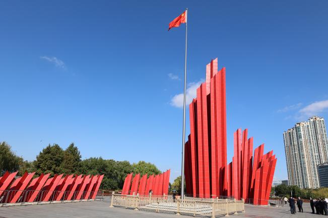 在烈士纪念碑前,同学们跟随工作人员的指引,奏唱国歌,献上花圈,行鞠躬礼,集体默哀并环绕瞻仰。