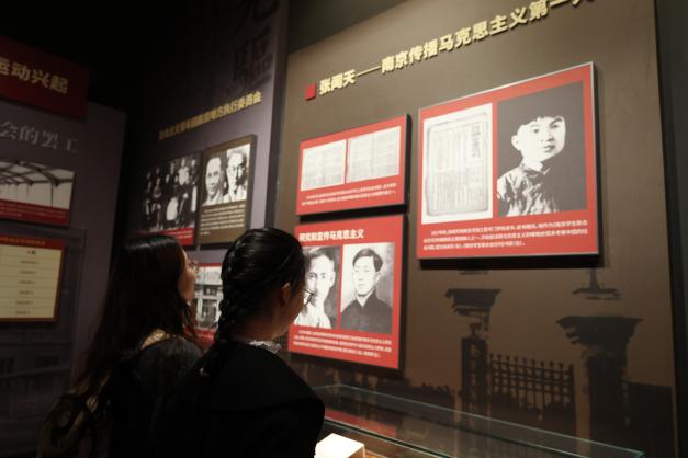 11月23日下午,调研一行人来到位于江苏省南京市玄武区汉府街18-1号的中国共产党代表团梅园新村纪念馆。在陈列厅的汉白玉浮雕前,同学们面对党旗,重温入党誓词。