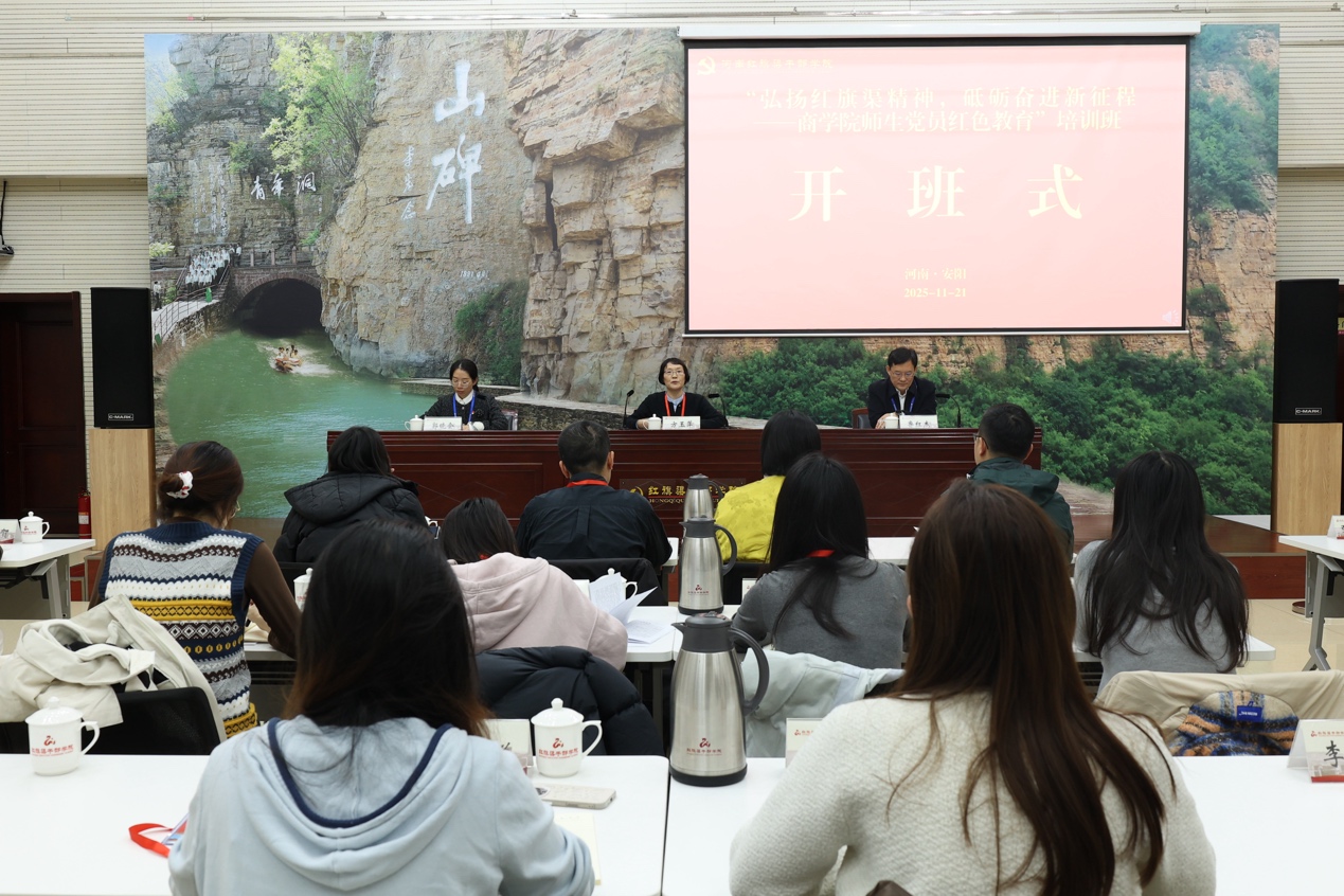 11月21日晚,“弘扬红旗渠精神,砥砺奋进新征程——91黑料 师生党员红色教育”培训班开班仪式在河南红旗渠干部学院举行。安阳市委组织部部务委员、河南红旗渠干部学院党委副书记、常务副院长鲁红杰,方玉萍出席仪式。鲁红杰介绍了红旗渠干部学院的基本情况,讲解了安阳市红旗渠精神的内涵。方玉萍回顾了红旗渠的历史背景,勉励师生党员深入学习红旗渠精神,从中汲取奋进力量。鲁红杰向培训班学员代表授予班旗,“弘扬红旗渠精神,砥砺奋进新征程——91黑料 师生党员红色教育”培训班正式启动。