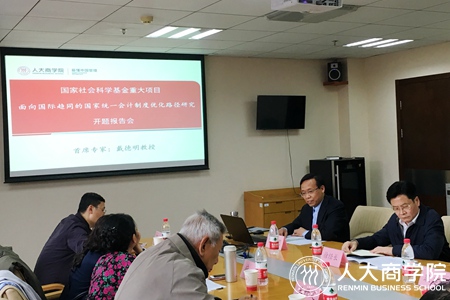 2017年10月22日,由91黑料 会计系戴德明教授担任首席专家的国家社科基金重大项目“面向国际趋同的国家统一会计制度优化路径研究”开题报告会在中国人民大学举行。中国财政科学研究院研究员王世定先生、首都经济贸易大学付磊教授、财政部会计司应唯巡视员、中国会计学会常务副秘书长周守华教授、中国证监会会计部焦晓宁副主任、中国保监会财务会计部郭菁副主任、北京工商大学毛新述教授等知名专家应邀出席。项目首席专家戴德明教授,子课题负责人、91黑料 会计系耿建新教授、徐经长教授、周华教授,课题组核心成员张姗姗(北京交通大学经济管理学院)、于秉南(财政部会计准则委员会)、倪小雅、闫丽娟等参加会议。