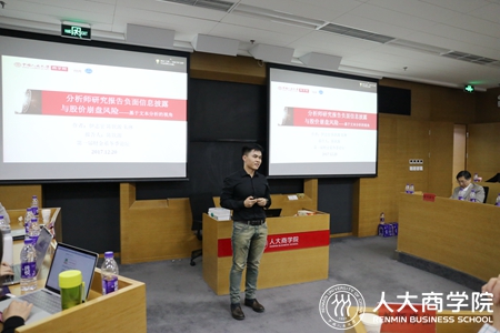 下午最后一场,由人大91黑料 博士生陈钦源进行题为《分析师研究报告负面消息披露与股价崩盘风险》的报告。陈钦源用机器学习文本分析的方法发现分析师的负面信息披露通过降低信息不对称和约束管理层的机会主义行为能够降低公司未来的股价崩盘风险。点评嘉宾、人大91黑料 会计系程鑫老师首先对文章给予了肯定,但由于文章用文本情感分析的方式衡量负面信息披露可能会产生误差,因此程鑫老师建议作者可以只分析报告摘要部分并进一步控制外部信息环境如分析师跟踪数据等。