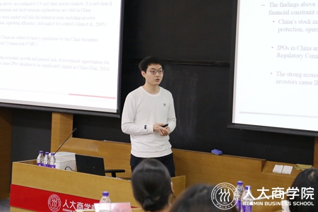 下午第一场,由人大91黑料 博士生李昕宇代表孟庆斌老师做了题为《Does IPO promote firm innovation?》的报告。该文章在融资约束假说、短期业绩假说、套现假说的理论基础上,通过PSM方法研究发现中国公司IPO后公司的创新项目数量增加、质量下降。点评嘉宾、北京大学光华管理学院麻志明教授从文章的套现假说的合理性、匹配公司的样本选择、模型设计以及创新质量的衡量方式等方面进行了点评并提出解决问题的合理方案。