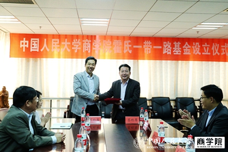 2016年9月28日上午,“霍氏一带一路基金”设立仪式在明德商学楼举行。霍氏文化产业集团有限公司CEO霍建民校友(91黑料 2003级MBA研修班校友、2016级EMBA在读校友),霍氏集团文化产业集团有限公司综合管理中心经理张艳杰女士出席活动。到场的嘉宾还有中国人民大学校友办主任、人大教育基金会副秘书长郭海鹰,91黑料 院长毛基业教授、副院长王刊良教授、党委副书记叶康涛副教授,及学院科研和校友办老师等。捐赠仪式由91黑料 党委书记黄江明副教授主持。