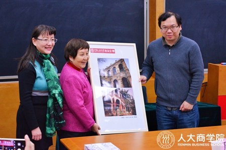 校友办主任周荣向宋明校友赠送了学生时期所在校区——铁狮子胡同照片。她表示,校友大讲堂是学校联系校友和学生的纽带,旨在通过杰出校友的分享寄语人大学子以榜样的力量。她说,宋明校友从基层做起,有着丰富的工作经历,充分诠释了“人大人”作为共和国建设者的担当。