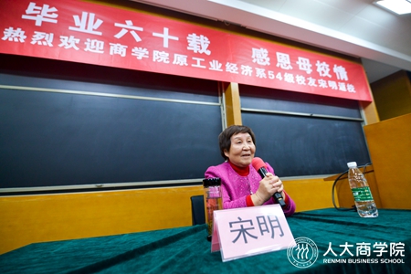 11月7日下午,“中国人民大学校友大讲堂”系列活动在汇贤C座301教室举行。1954级原工业经济系校友、安徽省原副省长宋明在毕业60周年之际重返母校,为在校师生做了题为“我的母校我的根”的精彩报告,分享了其人生感悟。