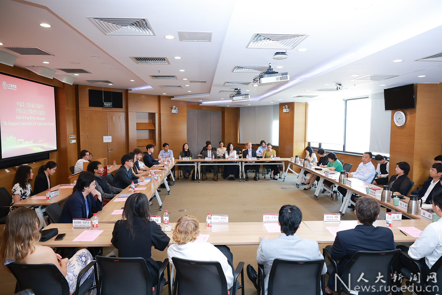 6月10日,中意美三学位管理学本科项目首届学生中国人民大学阶段学习总结会举行。来自中国、意大利、美国的30余名项目首届学生围坐一堂,交流学习生活感悟。中国人民大学党委书记张东刚,党委副书记、副校长王易出席活动。