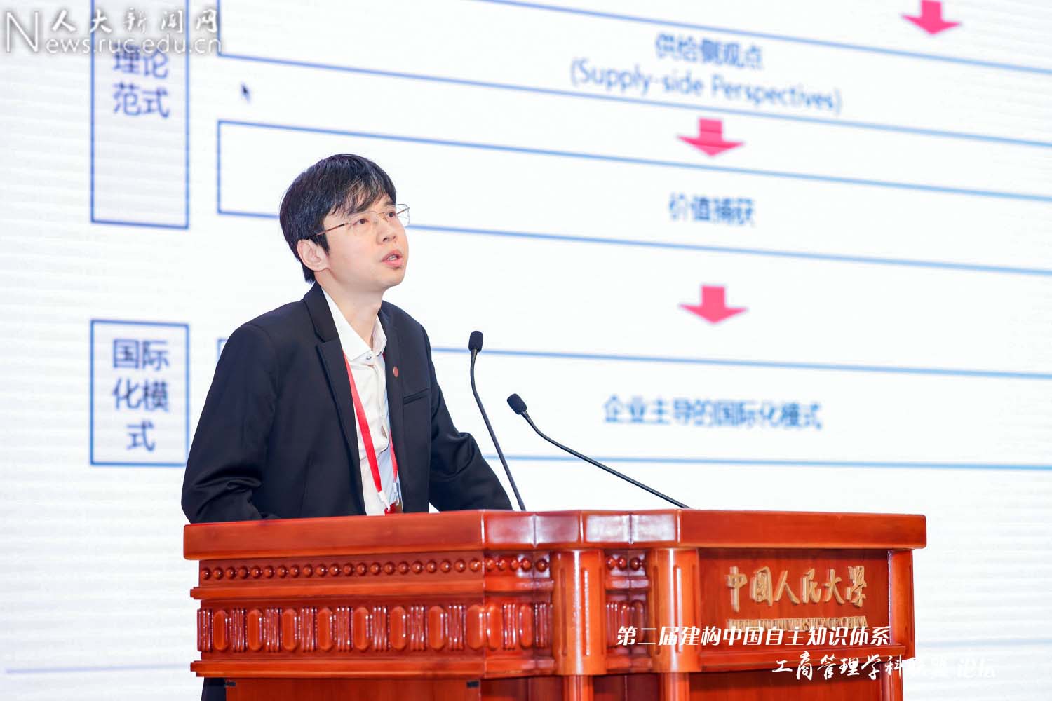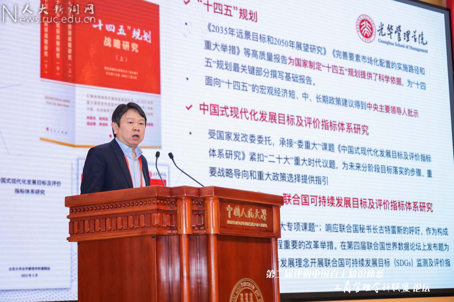 北京大学光华管理学院院长刘俏作“工商管理学研究如何推动新质生产力发展”的主题报告。