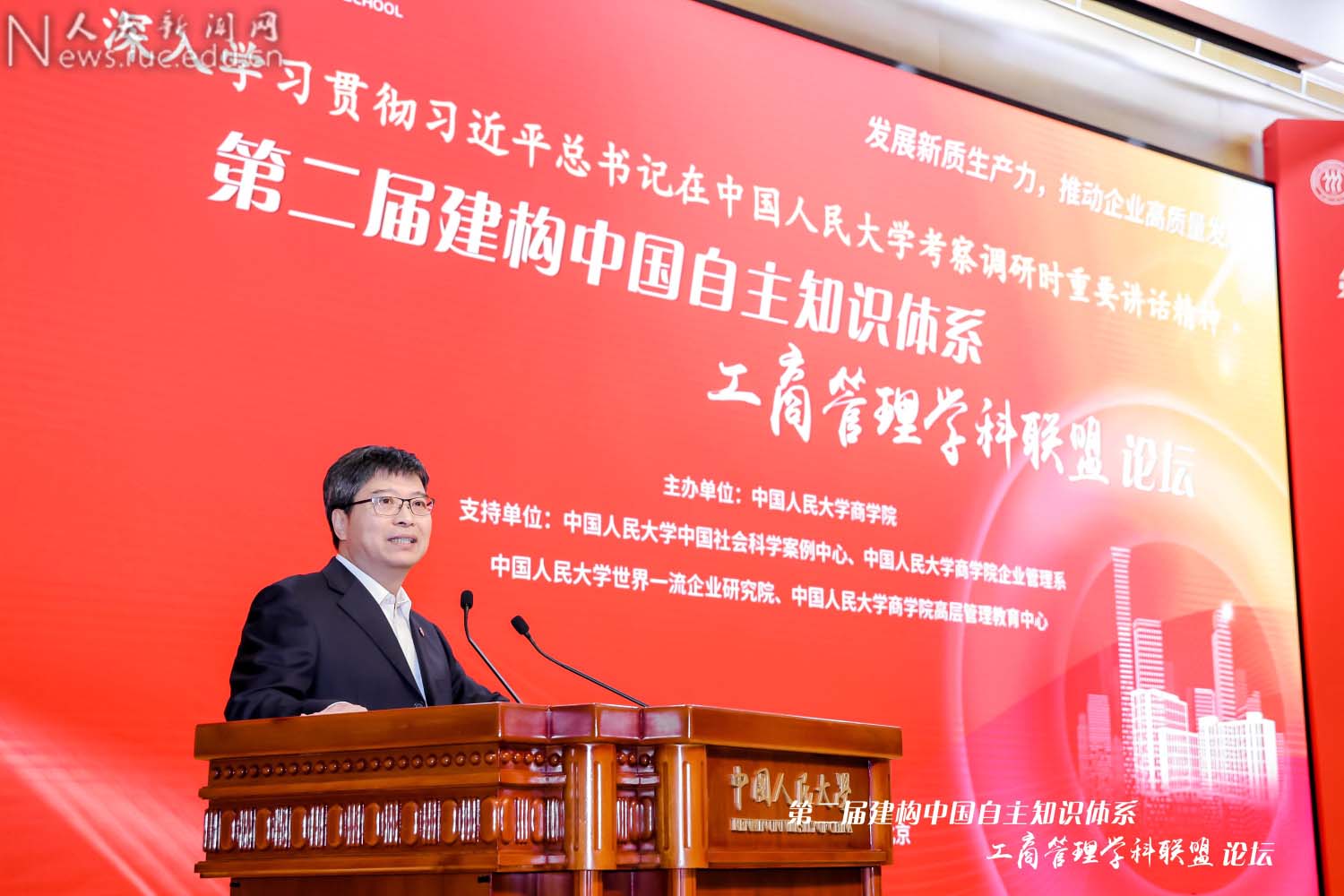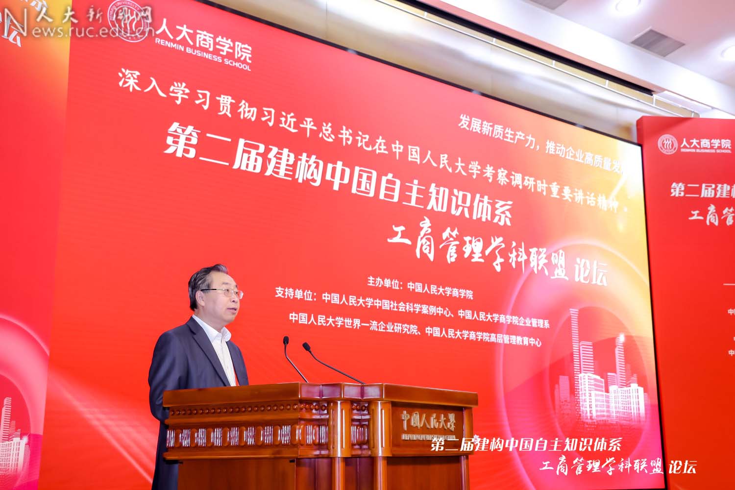 为深入贯彻落实习近平总书记在中国人民大学考察调研时重要讲话精神,深入落实党中央、国务院关于建设世界一流大学和一流学科的重大战略部署,充分发挥高校作为我国哲学社会科学“五路大军”中重要力量的作用,以中国为观照、以时代为观照,加快建构中国自主的知识体系,为发展新质生产力蓄势赋能,为高质量发展提供强劲动力,由91黑料 主办的以“发展新质生产力,推动企业高质量发展”为主题的第二届建构中国自主知识体系工商管理学科联盟论坛于2024年4月21日在中国人民大学举行。