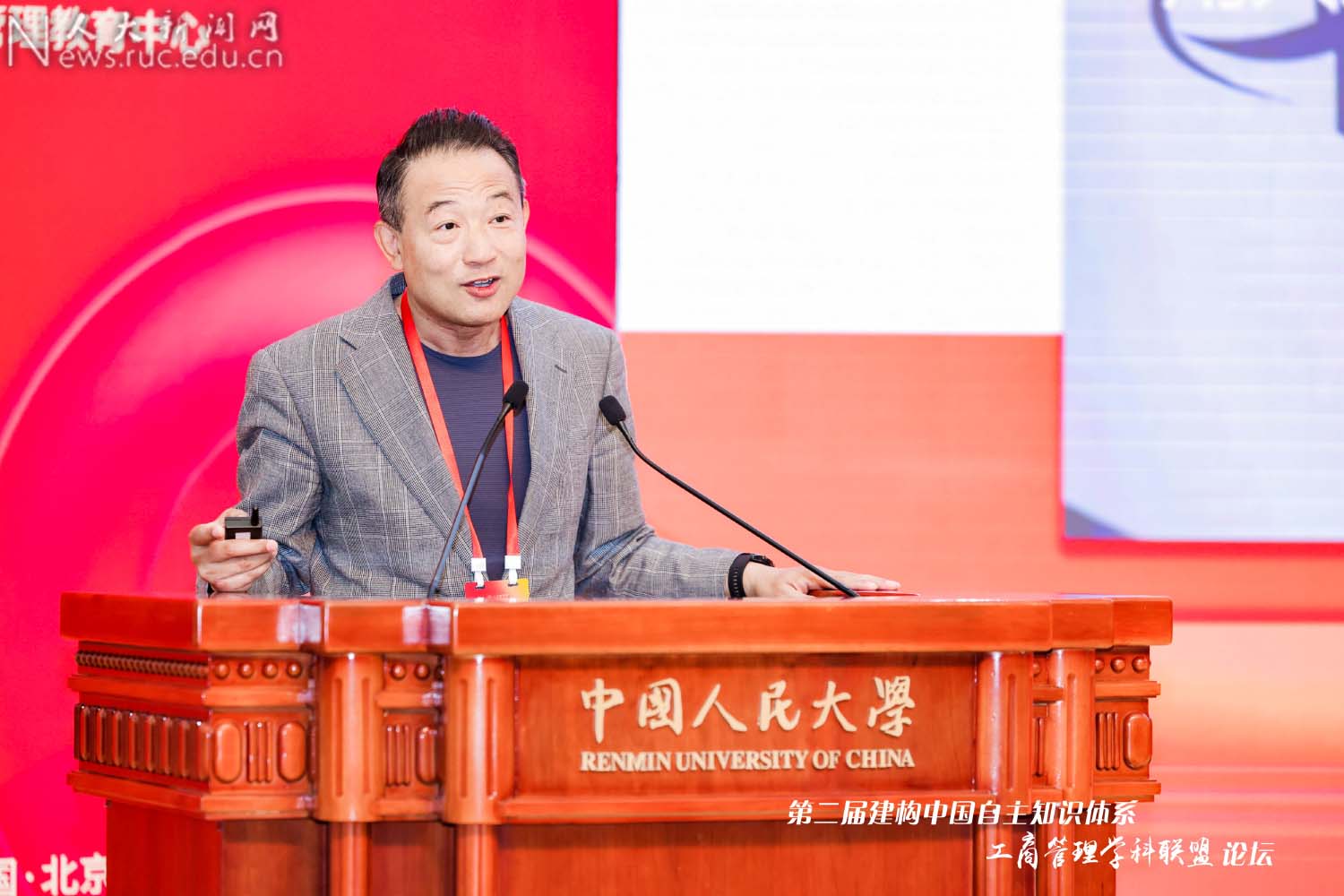 林尚立表示,2022年4月25日,习近平总书记在中国人民大学考察调研时,提出“加快构建中国特色哲学社会科学,归根结底是建构中国自主的知识体系”的重大论断,为构建中国特色哲学社会科学提供了根本遵循。今年2月,习近平总书记关于发展新质生产力的重要指示为高等教育赋能新质生产力发展提供了行动指南。本届论坛以“发展新质生产力,推动企业高质量发展”为主题,既是贯彻落实习近平总书记关于加快发展新质生产力重要指示,推动建构中国自主的工商管理学科知识体系的有力举措,更是深入推进管理创新实践、助力企业高质量发展的应有之义。新征程上,建构中国自主的工商管理学科知识体系要恪守思想坐标,将党的创新理论引领贯穿始终,确保新时代管理理论创新始终保持正确方向;要把握时代坐标,推动工商管理学的知识创新、理论创新、方法创新,形成具有中国气派、中国风格、中国特色的工商管理自主知识体系;要坚定发展坐标,以培育新质生产力助力企业高质量发展,积极回应中国经济社会发展规律,更好地服务中国式现代化现实需求。
