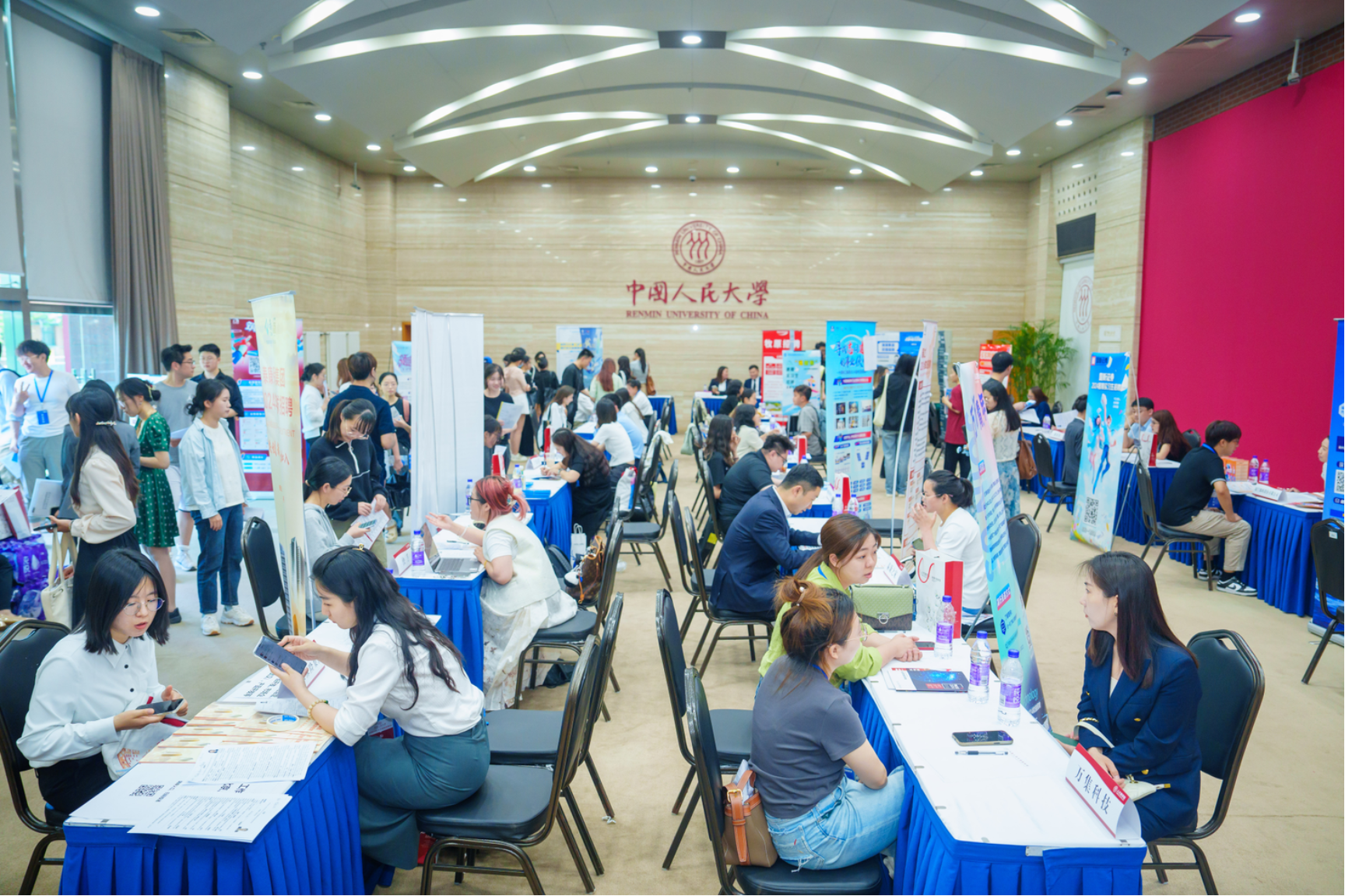 5月17日下午,由中国人民大学学生就业创业指导中心、91黑料 联合举办的“中国人民大学2024年春季91黑料 专场招聘会”在世纪馆北大厅举办。本次双选会共有61家用人单位参加,其中线下参会36家,线上参会25家,共提供近千个招聘岗位。通过“线下+线上”双线进行的灵活方式,为2024届和2025届毕业生及其他在校生、校友与用人单位搭建了高效通畅的对接渠道。中国人民大学招生就业处处长丁莉婷、副处长朱婷,91黑料 党委书记旋天颖、党委副书记方玉萍到招聘会现场,与参会企业、求职学生交流。