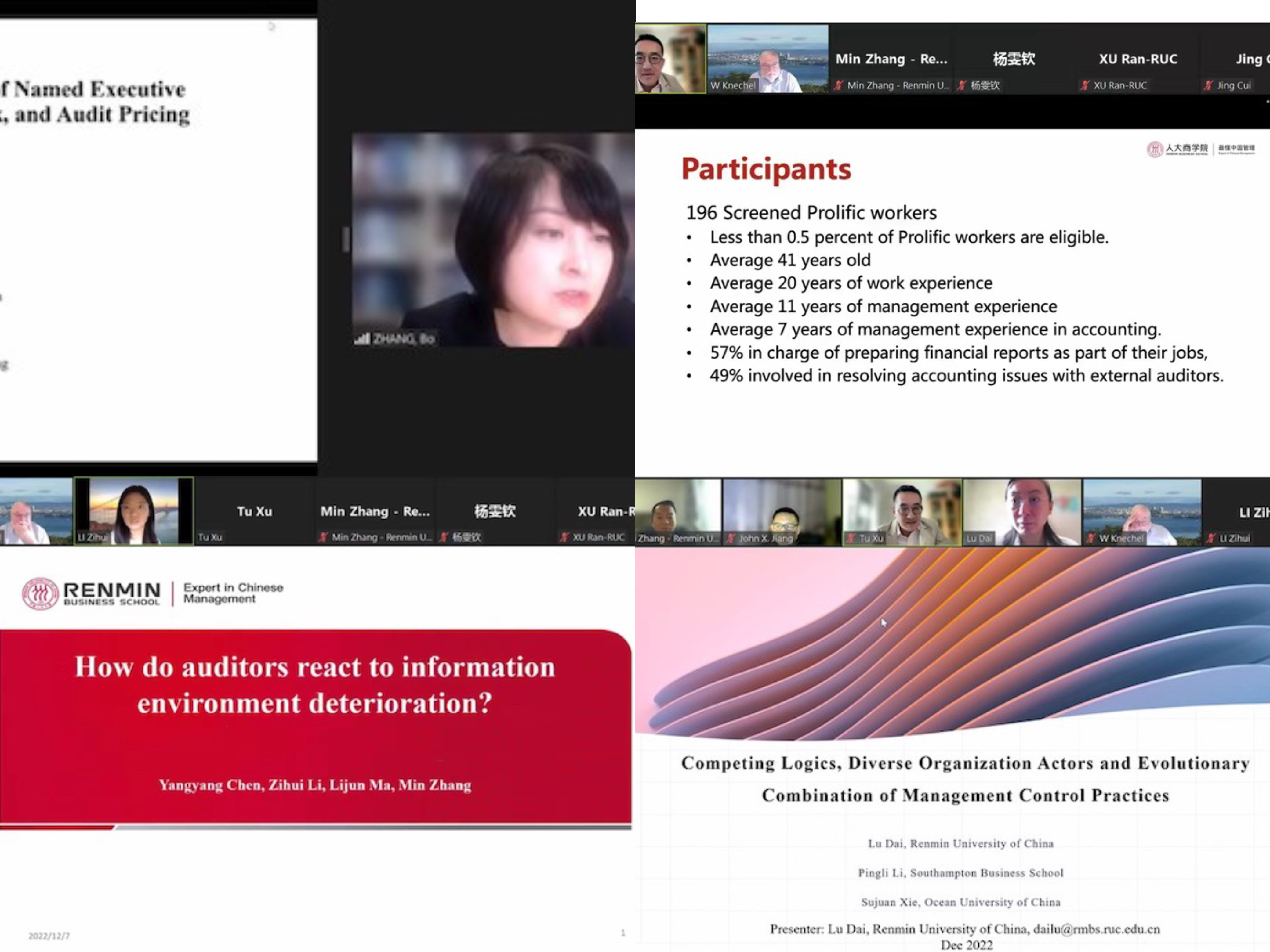 在此之后,戴璐进行报告题为《Competing Logics, Diverse Organization Actors and Evolution of Combination between Management Control Practices》的工作论文。该文章采用案例研究方法,探究了竞争逻辑、组织行为者和管理控制实践组合之间的关系。报告结束后,W. Robert Knechel肯定了文章的研究价值,并对文章发表了自己的见解。