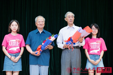 作为人大91黑料 历史发展的见证人,施礼明和顾志晟两位91黑料 老教授在热烈的掌声中走上舞台接受献花。他们表达了对学院的感激之情,对学院目前的发展变化感到骄傲和自豪,勉励校友们积极为国家做贡献。随后,全体校友起立,共同向老师道一声:“谢谢老师”!谆谆如父语,殷殷似友亲,一句“谢谢”表达了校友们对老师的教导之恩。