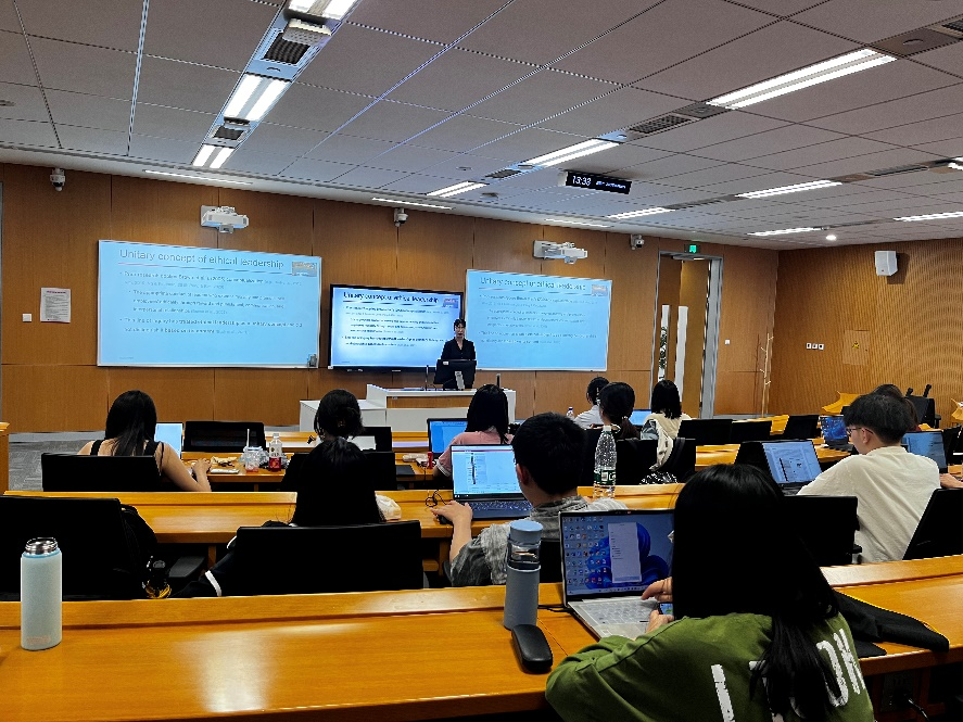 随后四位嘉宾分别进行主题演讲。夏军演讲题目为“理论驱动型管理研究”,张田余演讲题目为“Identity”,张辉演讲题目为“深入实施区域协调发展战略和区域重大战略”,李果演讲题目为“企业社会责任参与在供应链不同位置的回报平等吗?基于COVID-19的证据”。在场师生与嘉宾积极交流,现场气氛热烈。