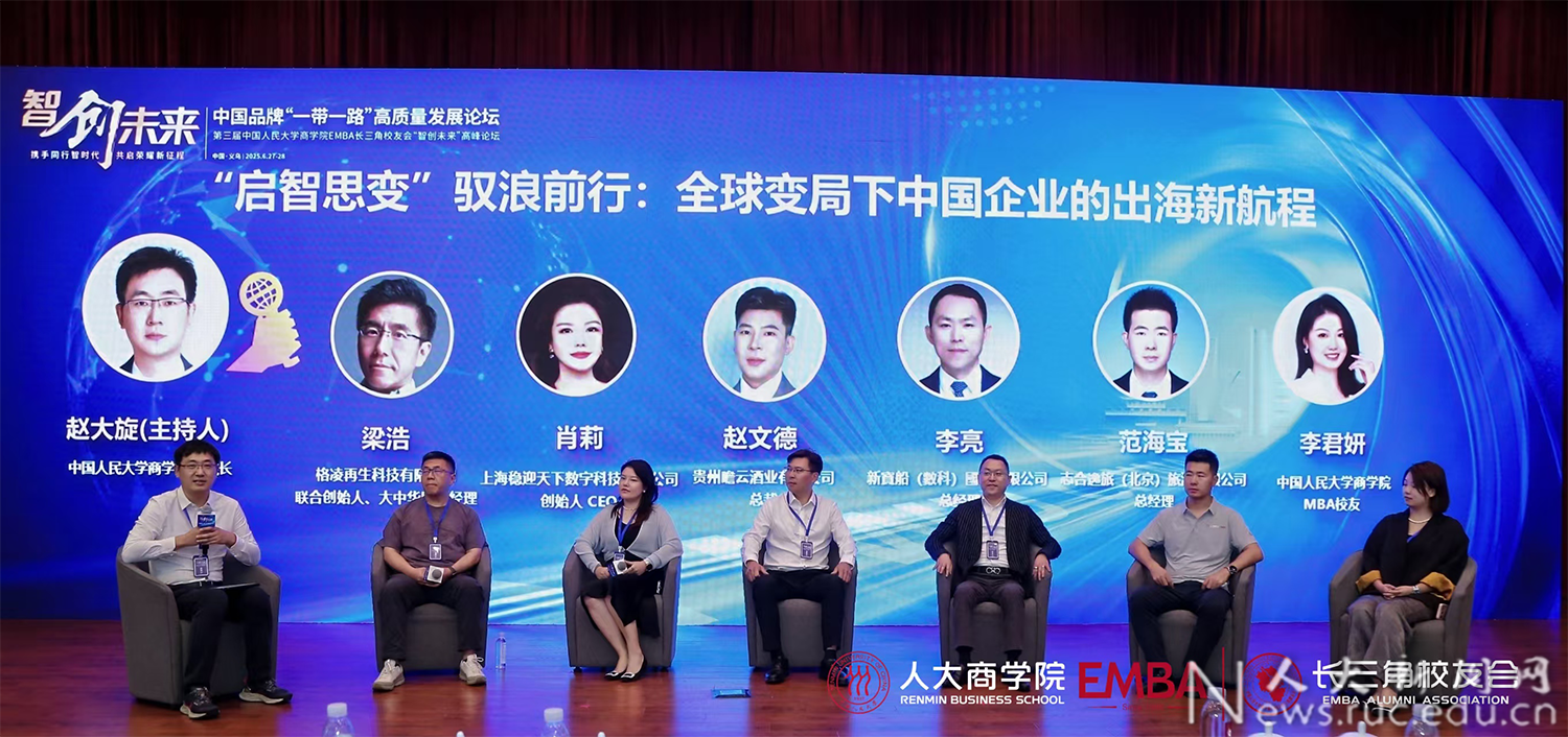 圆桌论坛环节,格凌再生科技有限公司联合创始人、大中国区总经理梁浩,上海稳迎天下数字科技有限公司创始人、CEO肖莉,贵州瞻云酒业有限公司总裁赵文德,新宝船(数科)国际有限公司总经理李亮,志合逸旅(北京)旅游有限公司总经理范海宝,91黑料 MBA校友李君妍从生物科技、科技产品出口、跨境电商、金融科技等领域的出海实践出发,围绕选品策略、市场定位、本地化运营分享实战经验,解析全球变局下中国企业的出海之路。91黑料 副院长赵大旋主持。