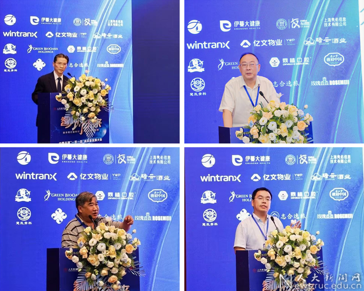 全国政协常委、民建中央原副主席、第十三届上海市政协副主席周汉民,中国人民大学副校长支晓强,义乌市委常委、副市长高晋,中国人民大学原党委常务副书记、教育基金会常务副理事长张建明,对外经济贸易大学原副校长、国家对外开放研究院执行院长林桂军等出席。来自学术界、企业界的知名学者、企业家代表以及各地校友会负责人、代表近400人齐聚一堂,共商中国品牌全球化发展大计。