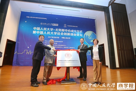 2017年2月26日,中国人民大学—尤努斯社会事业与微型金融研究中心暨中国人民大学社会创新创业论坛在中国人民大学召开。论坛聚焦如何通过“大众创业、万众创新”更好推动经济的可持续发展,以及如何通过创新构建“产学研”系统来助力社会事业发展,深入交流与探讨了社会企业与社会事业在中国的可行性。