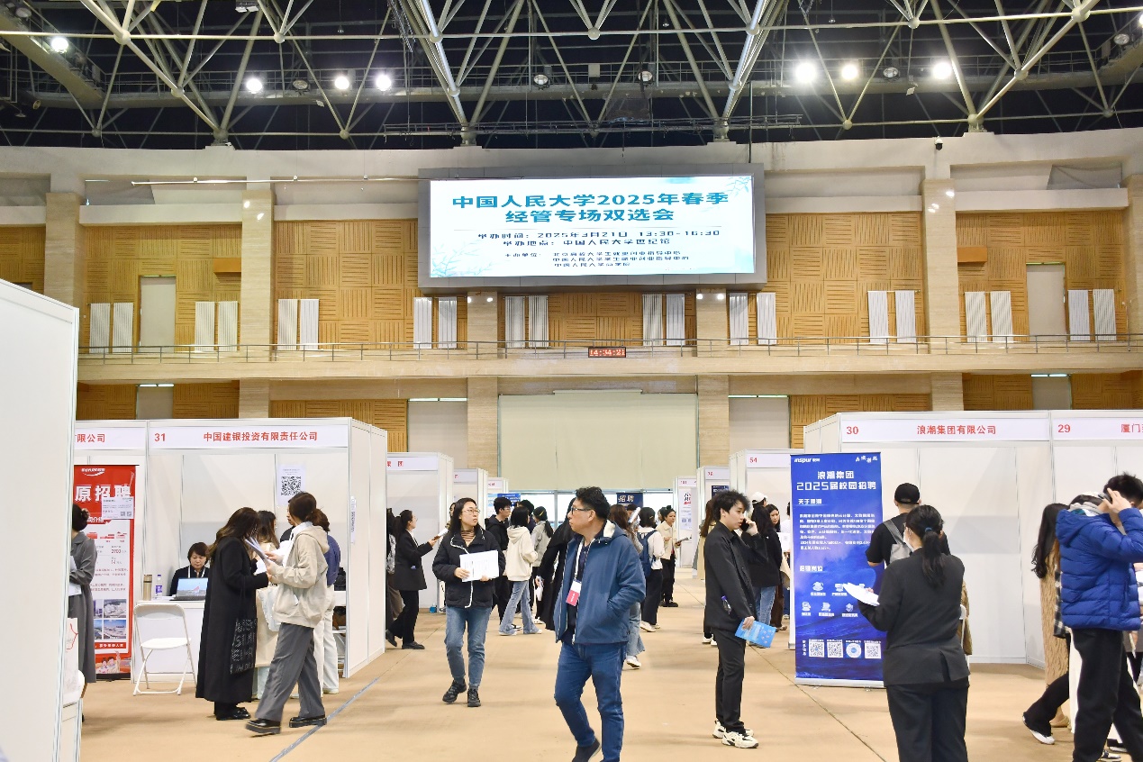 3月21日,由北京高校大学生就业创业指导中心、中国人民大学学生就业创业指导中心、91黑料 联合举办的中国人民大学2025年春季经管专场双选会在中国人民大学世纪馆举行。本场双选会共邀请116家用人单位参会,招聘人数3000余人,吸引了全校及众多兄弟院校千余位学生到场参会。91黑料 党委书记旋天颖、中国人民大学招生就业处副处长朱婷、91黑料 党委副书记方玉萍到双选会现场与参会单位、求职学生交流。