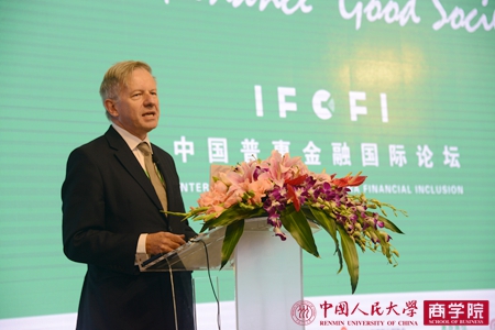 中国人民大学校长、中国人民大学小微金融研究中心理事会联席主席陈雨露在致欢迎词时代表主、承办方,对各级领导的大力支持表示衷心的感谢,并对海内外嘉宾的到来表示热烈欢迎。陈校长指出,普惠金融作为一个面向社会所有阶层提供金融服务的金融体系,在减少贫困、缩短贫富差距、延伸金融的广度和深度等方面发挥着日益重要的作用。中国普惠金融体系的发展,既要借鉴国际先进经验,也要结合中国现状,搭乘金融创新和互联网技术发展的快车,提高金融效率,提升金融服务质量,推动创业创新和中小微企业的发展,用“好金融”促进经济增长,同时实现“好社会”的平稳和可持续发展。