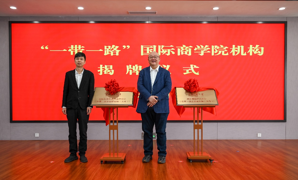 宋大我与易靖韬共同为“国际经贸新秩序研究中心(世界一流企业研究院(义乌))”“跨境营销研究中心(世界一流企业研究院(义乌))”揭牌。