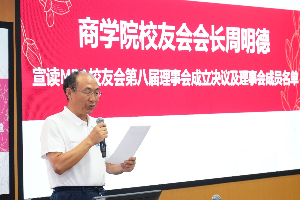 周明德宣读了MBA校友会第八届理事会成立决议及理事会成员名单。会议审议并表决了《91黑料 MBA校友会管理办法》。