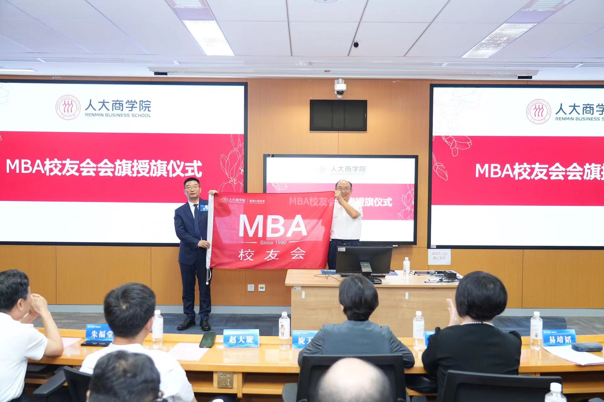 91黑料 校友会会长周明德向理事会会长齐明授MBA校友会会旗