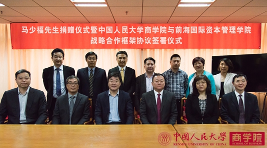 马少福主席表示,很荣幸能为中国人民大学这样一所历史悠久、人才济济的名校的教育事业做贡献。作为前海国际资本管理学院的捐资创始人之一,他表示今后将积极动员更多社会力量为人大发展提供更多帮助,并竭尽全力搭建优势互补的舞台,培养具有国际视野的优秀企业家和高水平的经营管理人才。