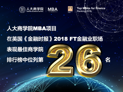2016年1月,人大91黑料 MBA项目首次参加《金融时报》全球MBA百强排行榜的排名并跻身世界50强,位列第43名,2018年1月,跃居全球第39位。此次“英国《金融时报》2018FT金融业职场表现最佳91黑料 排行榜”,人大91黑料 MBA项目首次入榜并位列全球第26位,充分说明了项目近年来围绕学院的使命、愿景、价值观持续思考与创新,秉承精细化管理,不断整合优化国际合作的平台与资源,促进人大91黑料 MBA毕业生的全面价值成长和职场竞争力的提升。