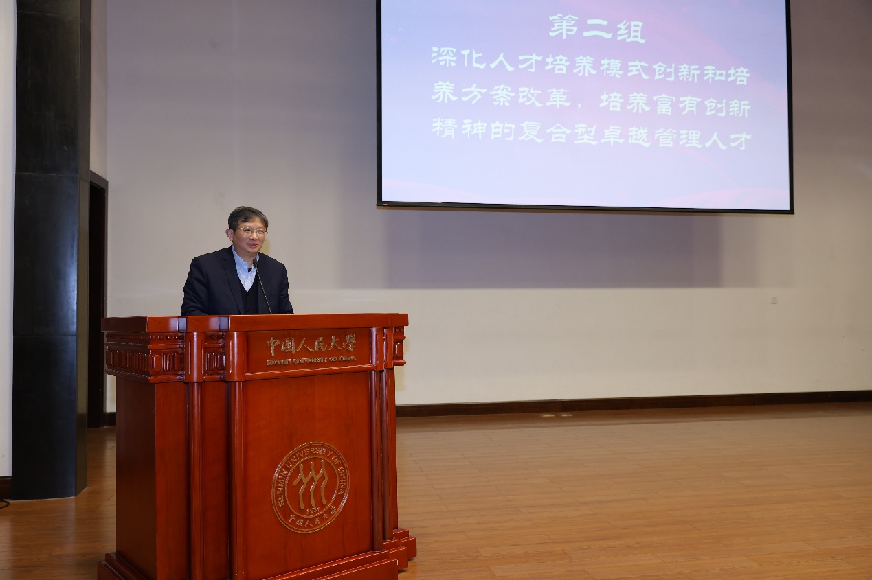 贸易经济系教授谷克鉴代表“两个行动计划”学科建设组报告研讨成果。他表示,小组成员围绕构建自主的工商管理知识体系、统筹学院学科建设和事业发展主题展充分讨论,充分肯定学院一个时期以来有关工作及其进展,同时建议构建自主的工商管理知识体系应当更加注重深刻理解和掌握自主知识体系构建的共同规律,注意培育学院的特色优势;加强已有的特色成果形式案例库建设、深化已有工商管理特色理论的诠释和传播,培育教师的特色优势;进一步加强师资队伍建设,做好有组织的科研工作。