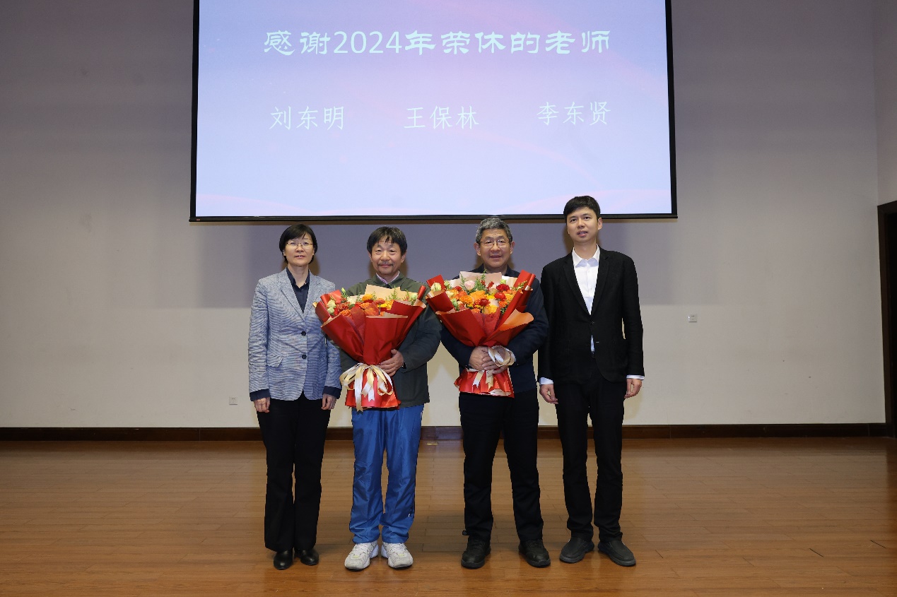 为向躬耕教坛数十载的退休教师表达敬意和感谢,2024年度教师荣休仪式在会上举行,全体教职工向2024年退休的教师刘东明、王保林、李东贤送上诚挚的祝福。