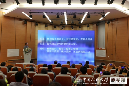 在宋华教授致开幕词后,陈冠教授与参会者分享了人大校友刘秀延的两个互联网思维案例——“来众筹”扶贫计划及“中律众筹”免费法律咨询项目。