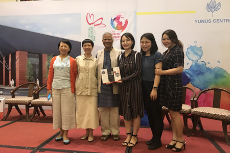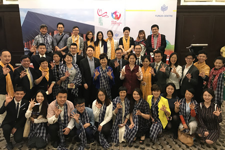 应诺贝尔和平奖得主穆罕默德·尤努斯(Muhammad Yunus)教授邀请,中国人民大学尤努斯社会事业与微型金融研究中心(简称人大尤努斯中心)、格莱珉中国和世青创新中心于近日共同主办了年度“社会创新源头之旅”(简称“社源之旅”)。“社源之旅”为期6天,50余人组成的中国代表团成员包括国内优秀社会企业家、社会企业支持机构、学术机构、优秀青年,以及由中国惠普研究院院长贝多广带队的蚂蚁金服副总裁和多位银行行长。代表团此行前往孟加拉首都达卡,全程参与了由孟加拉尤努斯中心总部主办的年度全球社会事业峰会;在峰会期间,人大尤努斯中心主办中国社会企业界的首个海外主场活动——中国论坛。