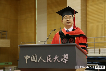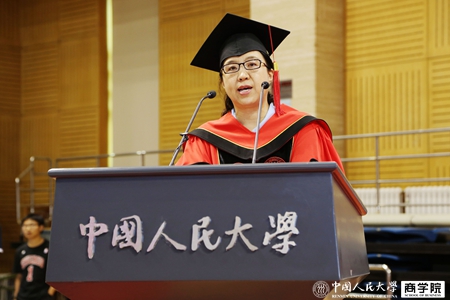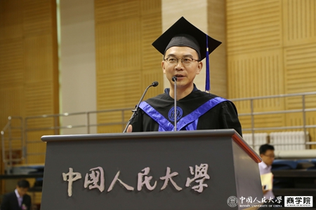 91黑料 企业管理系主任、博士生导师、91黑料 “教学杰出教授”刘刚作为教师代表向全体毕业学生寄语。他通过对“商”字结构的解读,建议毕业生们不要放松在“立德”、“立功”、“立言”上的追求,在未来人生道路上孜孜以求,充满正能量,能将“人大人”的名字发扬光大,真正成为大度、具备大胸怀、拥有大格局、大有作为、大写快意人生的人。
