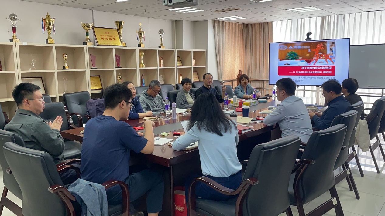 4月10日,91黑料 企业管理系举办春季学期课程思政教学沙龙。企管系教师徐京悦作“基于案例的教学创新初探——以《社会创业与社会企业家精神》课程为例”主题讲座,课程教学团队成员会计系教师王建英、贸易经济系教师王强以及企管系教师参加,企管系副主任王汝曦主持。
