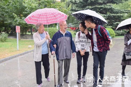 陆国泰今年84岁,身为调干生的他在工作两年后来到人大上学,比同班同学们要大几岁,被称为老大哥。他在本科期间出色的学习与研究能力受到了老师的关注,学校指名要他留校,四年本科再加上三年研究生,毕业后留校在劳动人事学院教授政治经济学。他在人大度过的时间比别人都要长,对人大的感情也都要深。他说,这几十年在人大风风雨雨的走过,一路看着它从黄土坯子的小房,成长为红楼高筑绿草成荫的美丽校园,从以培养马列主义师资和财经、政法干部为主的综合性大学,成长为奋力迈向“双一流”的世界知名学府,“几十年来的变化可谓是翻天覆地。”老人拄着拐杖,看着校园里的一草一木,眼睛里闪烁着感慨,也有感动。