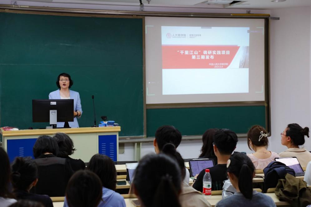 方玉萍勉励同学们要有鲜明的问题意识、敏锐的学术触觉、认真思考、积极设计调研方案、发现真问题、解决真问题、增长真本事,在参与中提高,在提高中成长。她强调,2023年启动的“千里江山”调研实践项目也是主题教育的重要环节,希望同学们在参与调研的过程中,要坚持“学思想,强党性,重实践,立新功”总要求,争做有理想、敢担当、能吃苦、肯奋斗的时代新人,以实际行动彰显人学子“复兴栋梁、强国先锋”风范,书写“新时代,新青年,新风貌”华章。