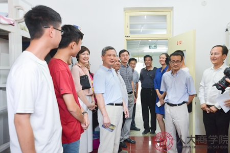 上午十时左右,中国人民大学党委书记靳诺,校长刘伟,党委常务副书记张建明,常务副校长王利明,副校长洪大用、贺耀敏,党委副书记郑水泉等先后视察我院迎新区,慰问工作人员和志愿者,了解新生报到情况,并对正在办理入学的新同学表示热烈欢迎并致以诚挚的问候。