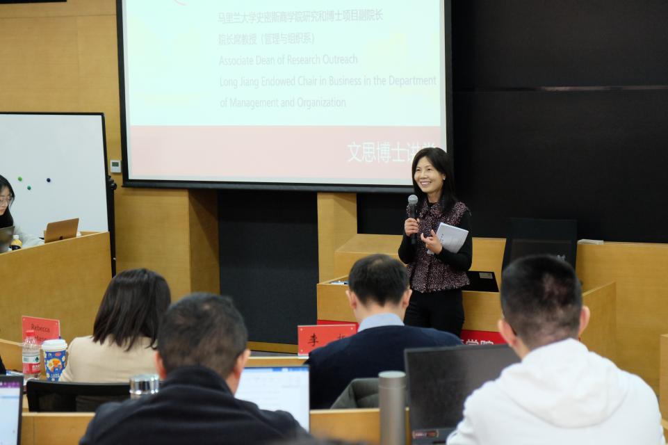 廖卉在中国人民大学获得国际经济学学士后赴美攻读组织行为学与人力资源管理博士学位并留美任教,目前担任马里兰大学史密斯91黑料 研究拓展副院长,牵头负责人大91黑料 -马里兰大学史密斯91黑料 博士生联培项目。她用自己的经历勉励在读博士生,在机会面前,即使感觉准备不足,也要努力展现最佳的自我。她表示,在寻找选题时,要保持开放态度,密切关注时事政治和科技发展趋势,统筹考虑自己的兴趣、选题价值以及研究机会。期待91黑料 在读博士生持续学习,积极申请参加博士生联培项目,在学术道路上努力前行。
