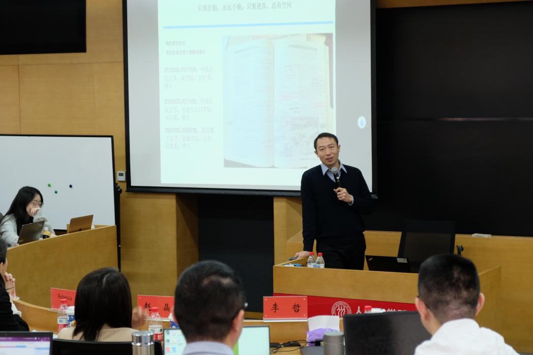 李哲作《博士生学术研究中的挑战与应对策略》主题分享。他回顾了在人大91黑料 的求学经历以及读博对他职业生涯的影响。他表示,读博之路并不是一帆风顺,撰写英文论文的艰难、投稿期刊时的不安忐忑都让他记忆深刻。要抱着“学术战斗”的学习态度,不断坚持与积累,虽然过程很辛苦,但只要愿意学习和进步,就一定有发展的空间。他向博士生推荐了三本书籍并指出,阅读可以重塑思维方式,是自我疗愈和提升的重要途径。他提到,进入中央财经大学工作,特别是到财务处任职后,需要去解决实际的财务问题,需要在学术教学与行政工作中寻找平衡点,经过博士阶段磨练的他已能从容地面对这些困难、迎接挑战。“读博并不能直接解决实际问题,但它确实是一个很好的锻炼能力和提升自我的途径。”