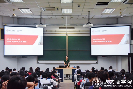 2017级本科生分专业说明会在教学三楼3101举行。教务办公室主任汪玲老师主持会议,2017级全体本科生参加会议。