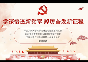 财务与金融系党支部、四川荣县玉章高级中学校党委、云南兰坪县第一中学党总支通过线上会议的形式,共同举办“学深悟透新党章 踔厉奋发新征程”主题党日联学活动。中共中央文献和党...
